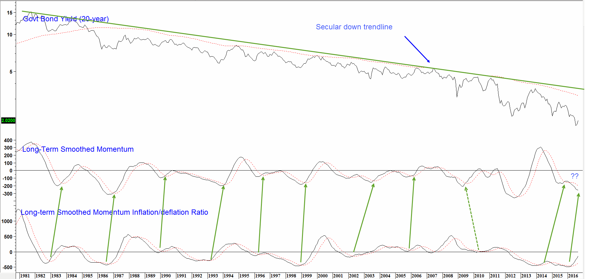 Chart 4- Government Bond Yields versus Two Momentum Indicators (Source: Martin Pring’s InterMarket Review)