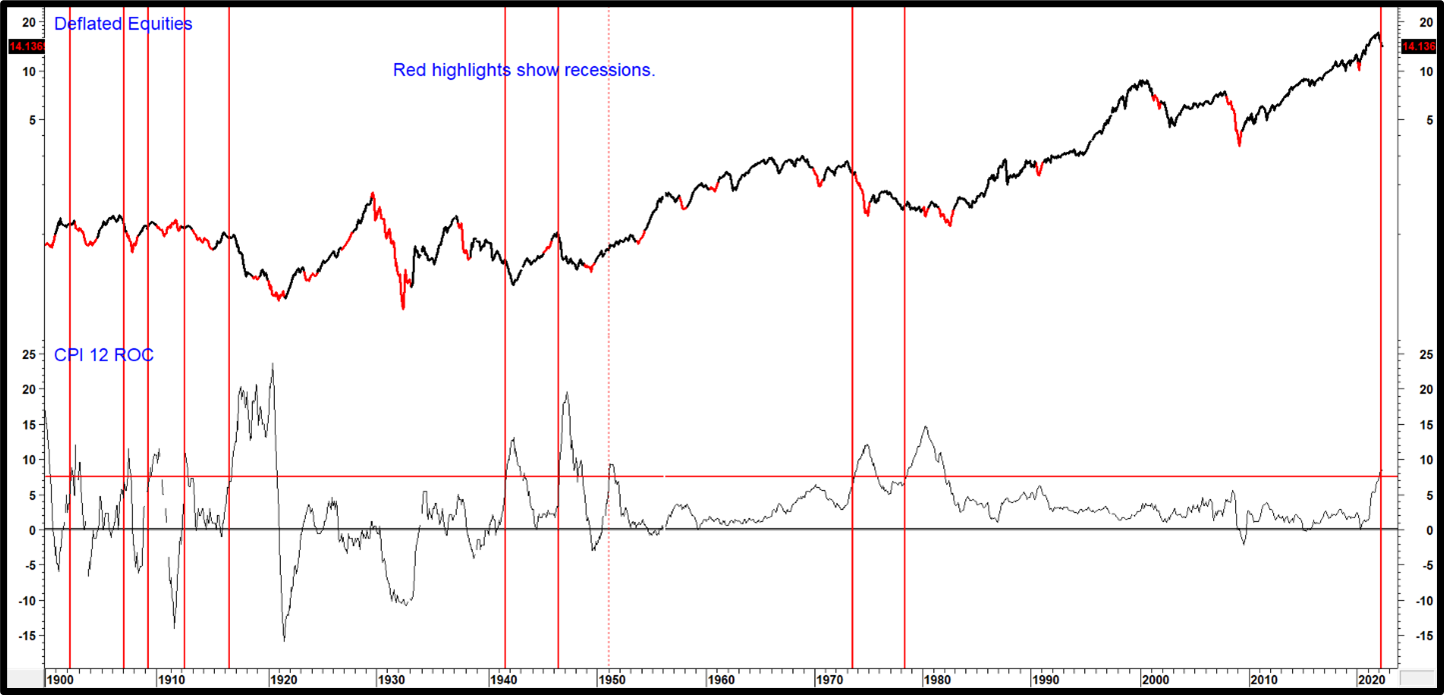 Chart 4 Deflated Equities and a 12-month ROC of the CPI