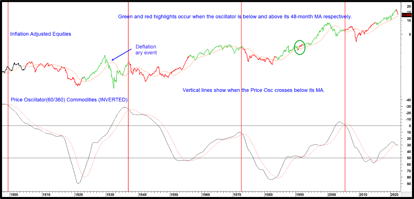 Chart 2 Inflation Adjusted US Equities vs Inverted Commodity Momentum
