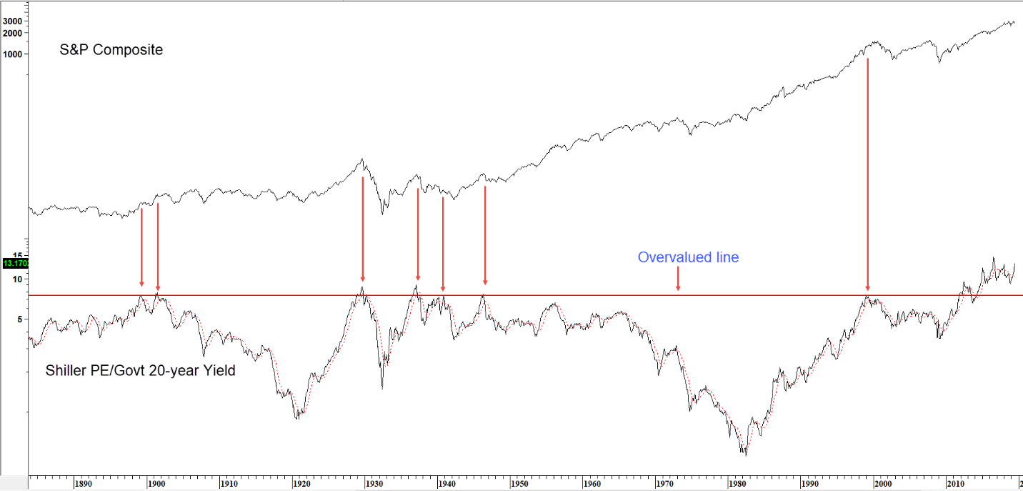 Chart 5 S&P vs the Shiller PE/20-Year Govt Yield Ratio 1880-2019